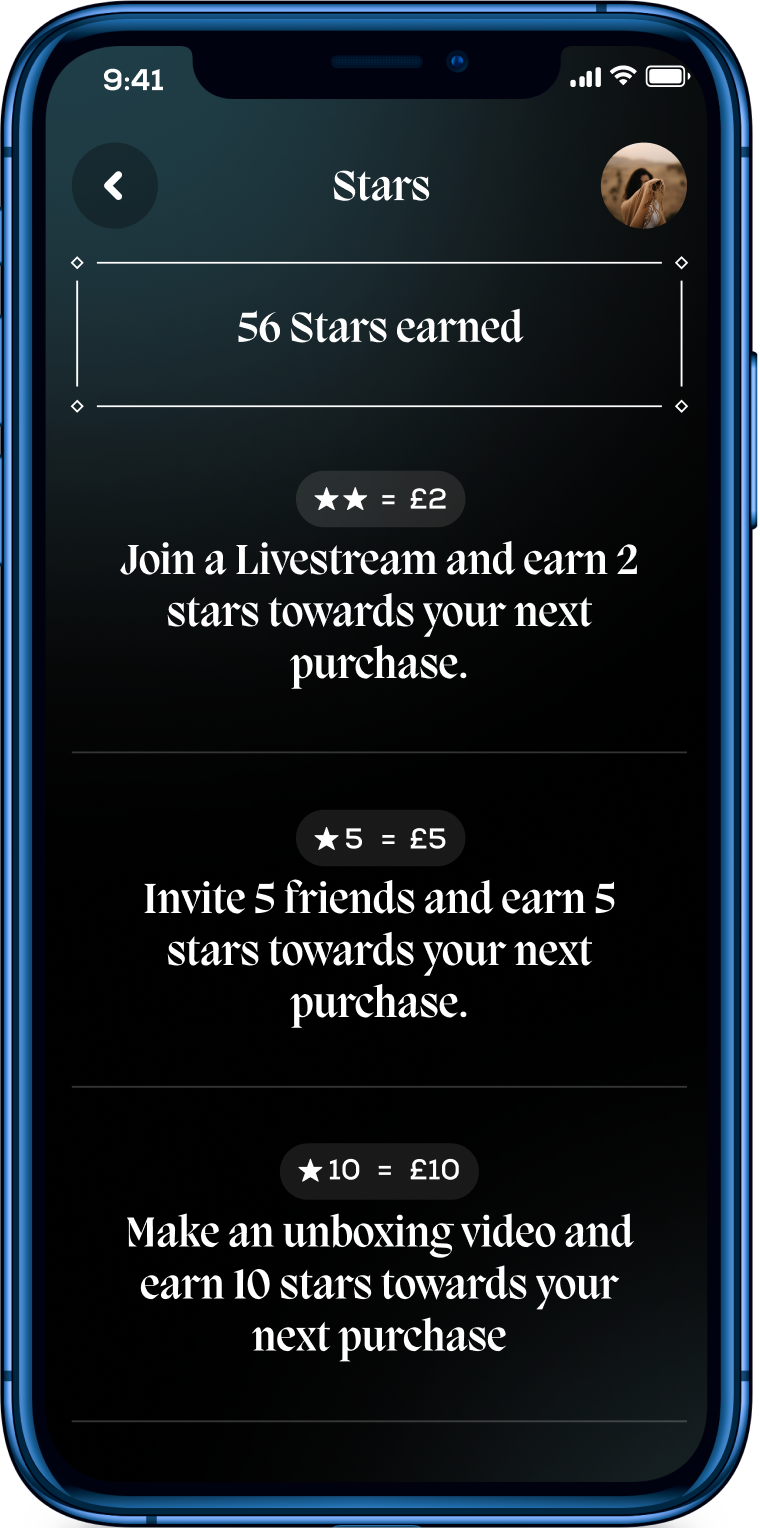 By contributing to the community, sharing unboxing videos, reviews, and other fun things, buyers earn Stars which they can use in your shop to increase loyalty and repeat purchases.